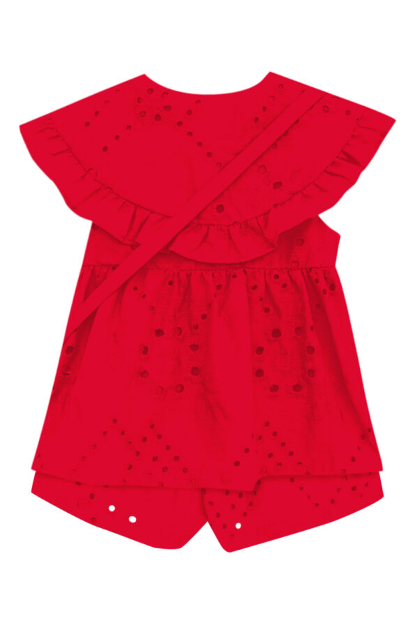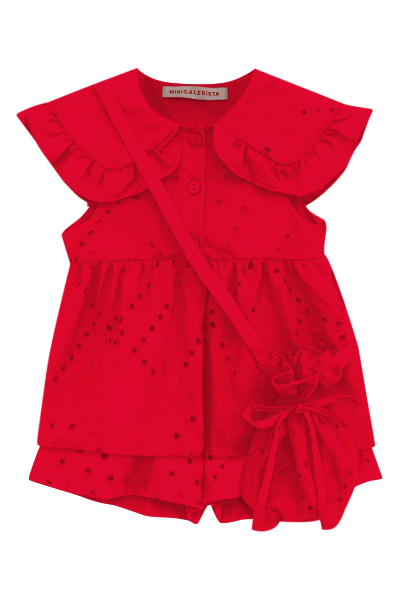 O conjunto Gabi é confeccionado em tecido laise de algodão bem leve e fresco. Possui gola com babadinhos e abotoamento frontal no busto com botões perolados ton sur ton. O short tem elástico na cintura e ambos tem forro de algodão.
