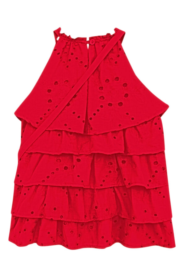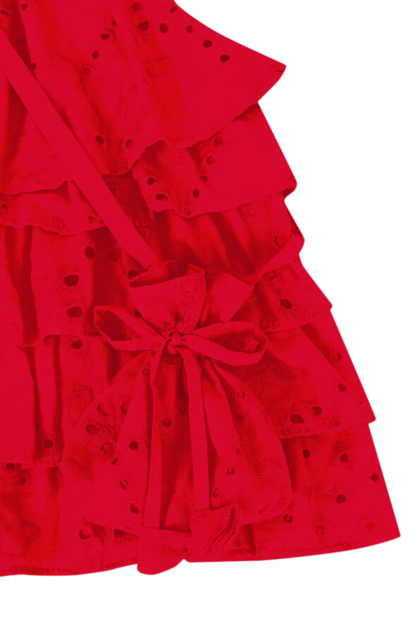 O Vestido Helen é confeccionado em tecido laise de algodão bem leve e fresco. Possui camadas de babados e abotoamento traseiro.